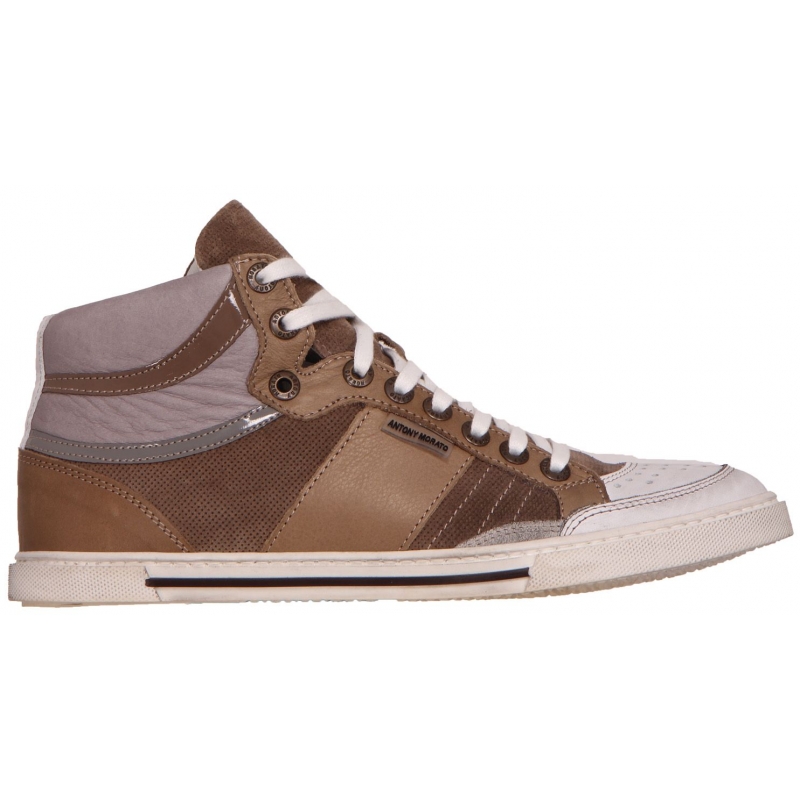 Hi cut perf leather sneaker - Schoenen - Bruin - Antony Morato